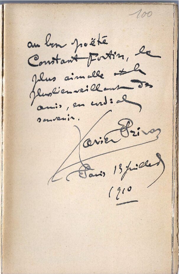 livre daté de 1904 en bon état (pages non découpées),dédicacé par l’auteur pour Constant Fortin (auteur) le 13 juillet 1910